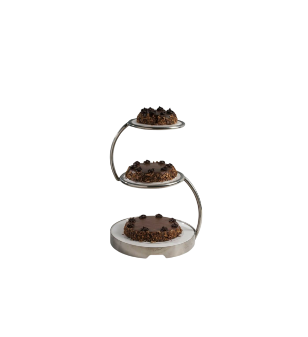 Whether used for hors d’oeuvres, salads, pastries, or other items, the stand offers a practical yet stylish solution for creating an inviting and visually appealing buffet experience. The steel material ensures easy maintenance and cleaning, making it ideal for both indoor and outdoor events.