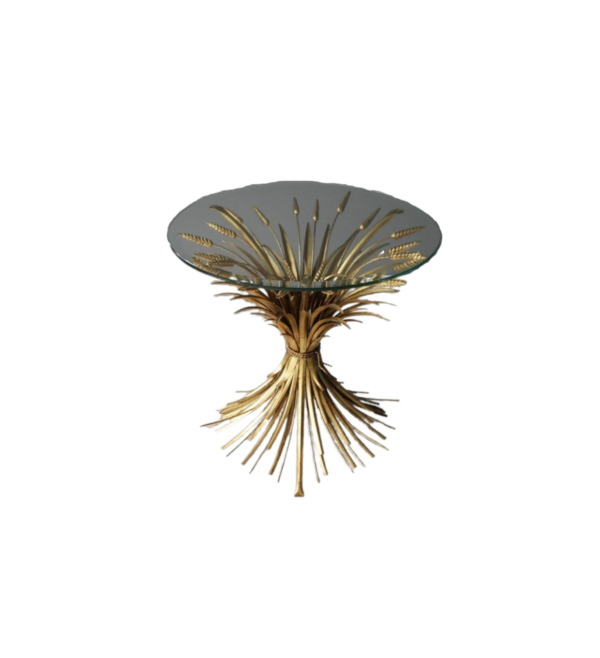 Design and Structure: The most distinctive feature of this table is its wheat-shaped design. The table’s legs or base are likely crafted in the form of wheat stalks or sheaves, with each leg or detail resembling the elegant, curved shapes of wheat. These elements are ornately designed, with fine, flowing lines that evoke the natural grace of wheat, creating a sense of harmony and organic beauty. The top of the table could be a solid wooden slab, such as reclaimed wood or rustic oak, which contrasts beautifully with the metal wheat accents. Alternatively, the table may have a metal top with a matte finish that complements the vintage aesthetic.